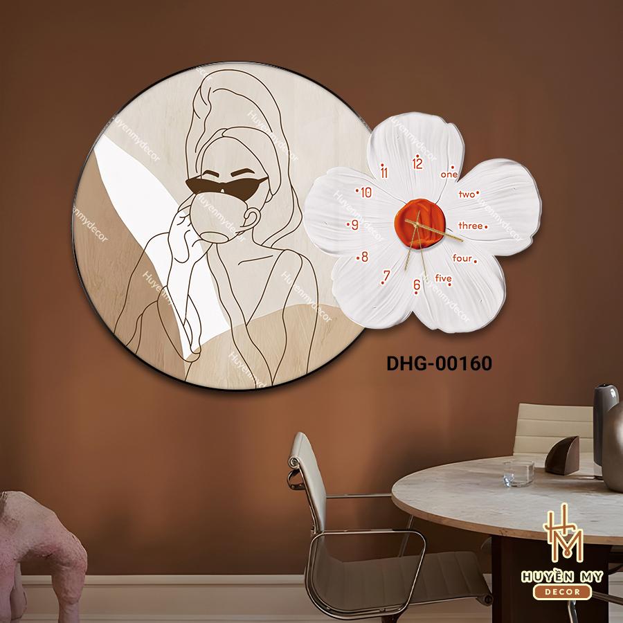 ( 12 mẫu ) Tranh đồng hồ chủ đề cô gái và hoa chất liệu tráng gương hiện đại Decor siêu xinh