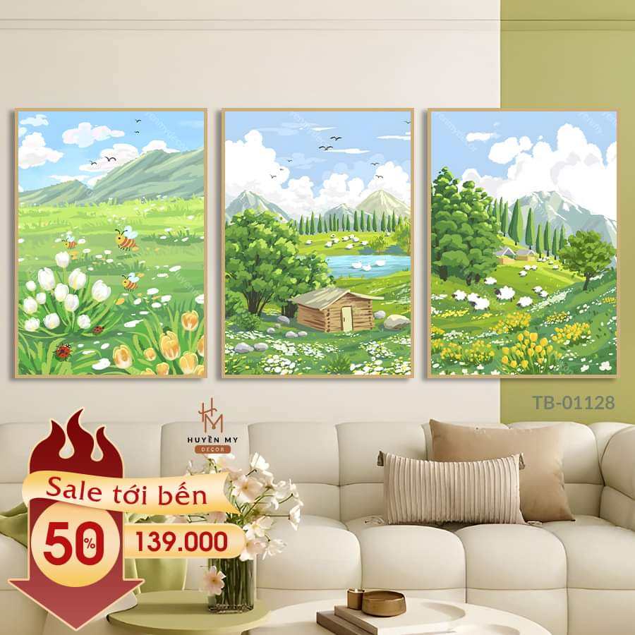 - chất liệu: tranh canvas căng khung gỗ thông