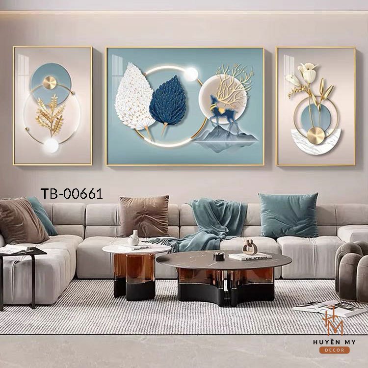 Bộ 3 Tranh 3D Treo Tường Tráng Gương Hươu Tuần Lộc, Phong Cảnh, Trang Trí Phòng Ngủ, Phòng Khách - Huyền My Decor