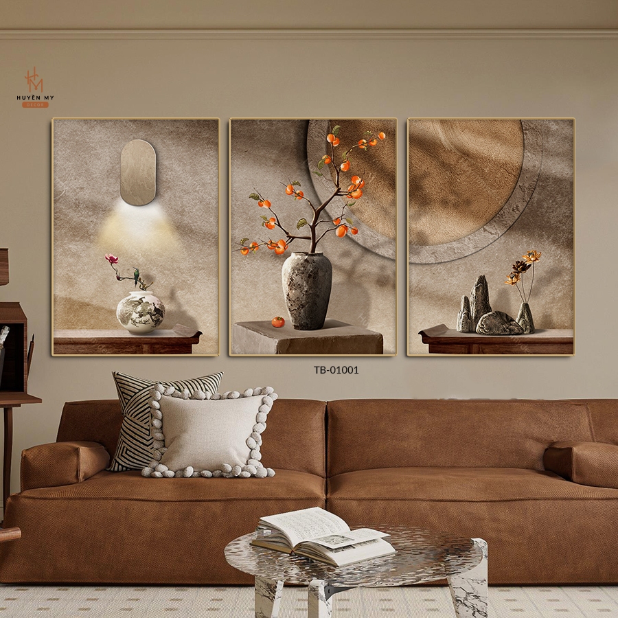 - Bộ 3 bức tranh treo tường mang đến sự tinh tế và trong trẻo, gọn gàng và tối giản cho không gian nội thất.