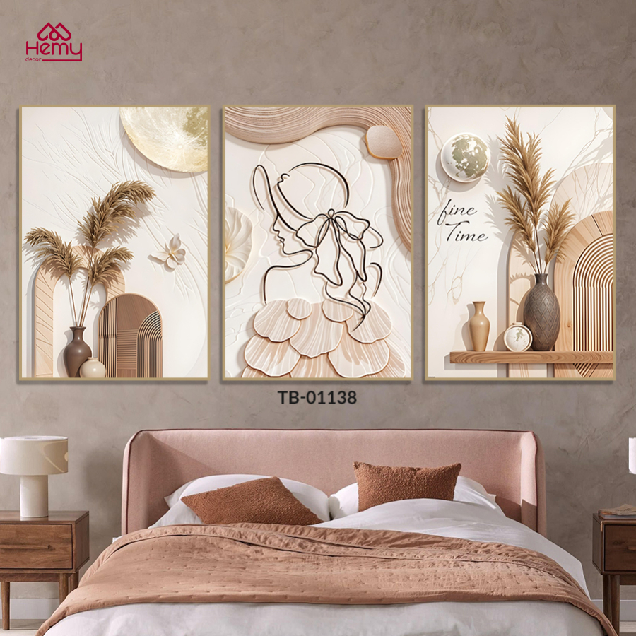 Bộ 3 Tranh Canvas Cô Gái Hiện Đại, Vintage, Trang Trí Phòng Khách, Phòng Ngủ,Spa, Livestream, Homestay – Hemy Decor