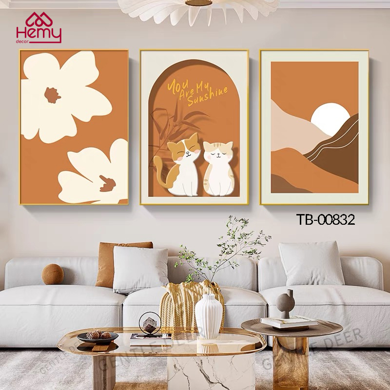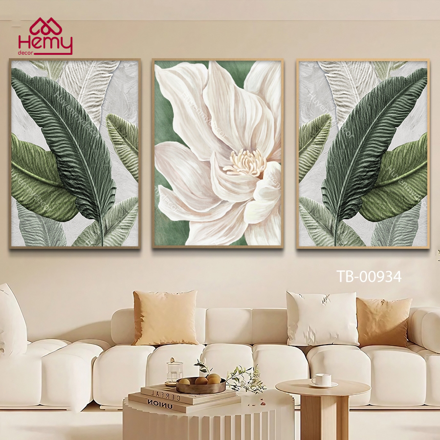 Bộ 3 Tranh Canvas Hoa Lá Hiện Đại, Vintage, Trang Trí Phòng Khách, Phòng Ngủ,Spa, Livestream, Homestay – Hemy Decor