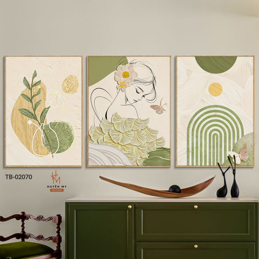 Bộ 3 Tranh Canvas, Tranh Treo Tường Cô Gái, Trang Trí Phòng Khách, Phòng Ngủ, Nail, Mi, Spa- Huyền My Decor