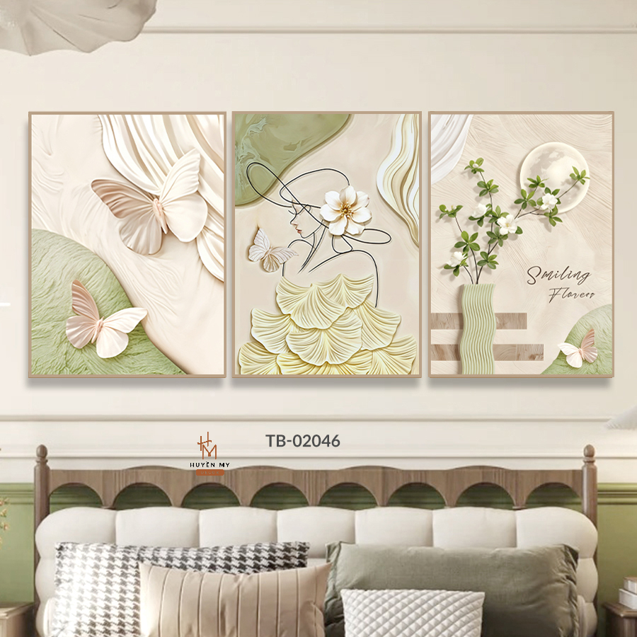 Bộ 3 bức tranh treo tường mang đến sự tinh tế và trong trẻo, gọn gàng và tối giản cho không gian nội thất.