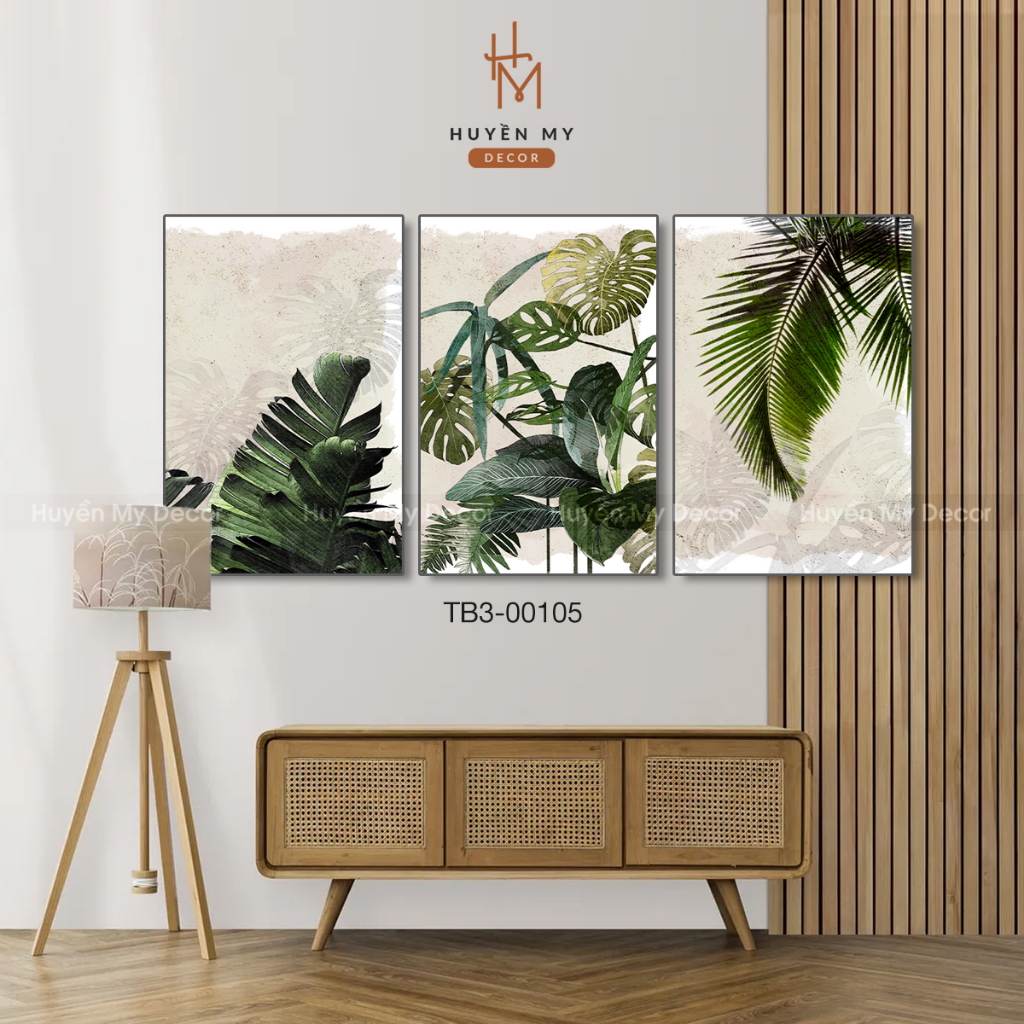 Bộ 3 Tranh Chủ Đề Hoa Lá Chất Liệu Canvas, Lụa Kim Sa Cao Cấp, Tranh Decor Phong Cách Hiện Đại Bắc Âu - Huyền My Decor