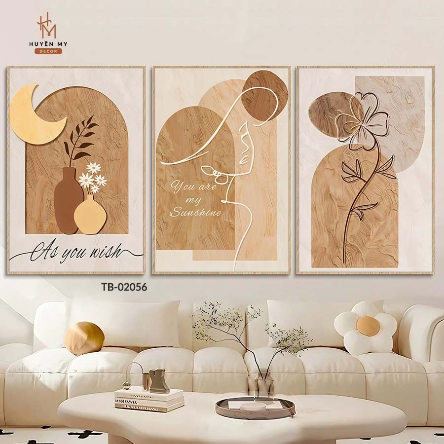 Bộ 3 bức tranh treo tường mang đến sự tinh tế và trong trẻo, gọn gàng và tối giản cho không gian nội thất.