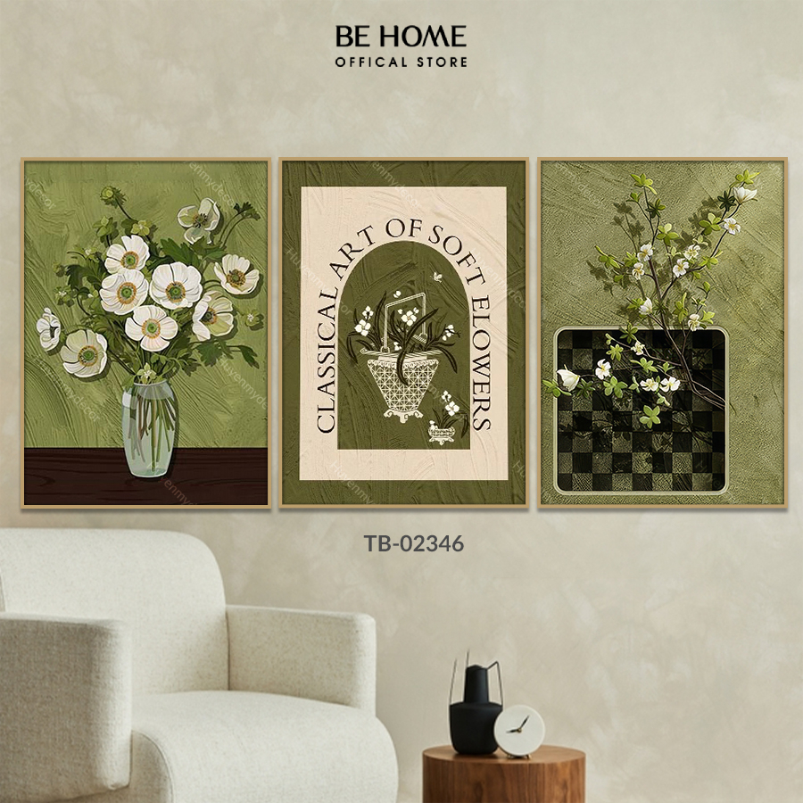Bộ 3 Tranh Dán Tường Treo Tường Canvas Hoa Lá Trang Trí Phòng Khách Sang Trọng, Phòng Ngủ, Khách Sạn – BeHome Decor