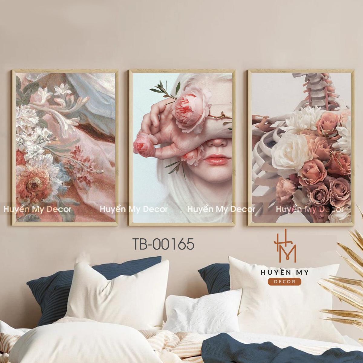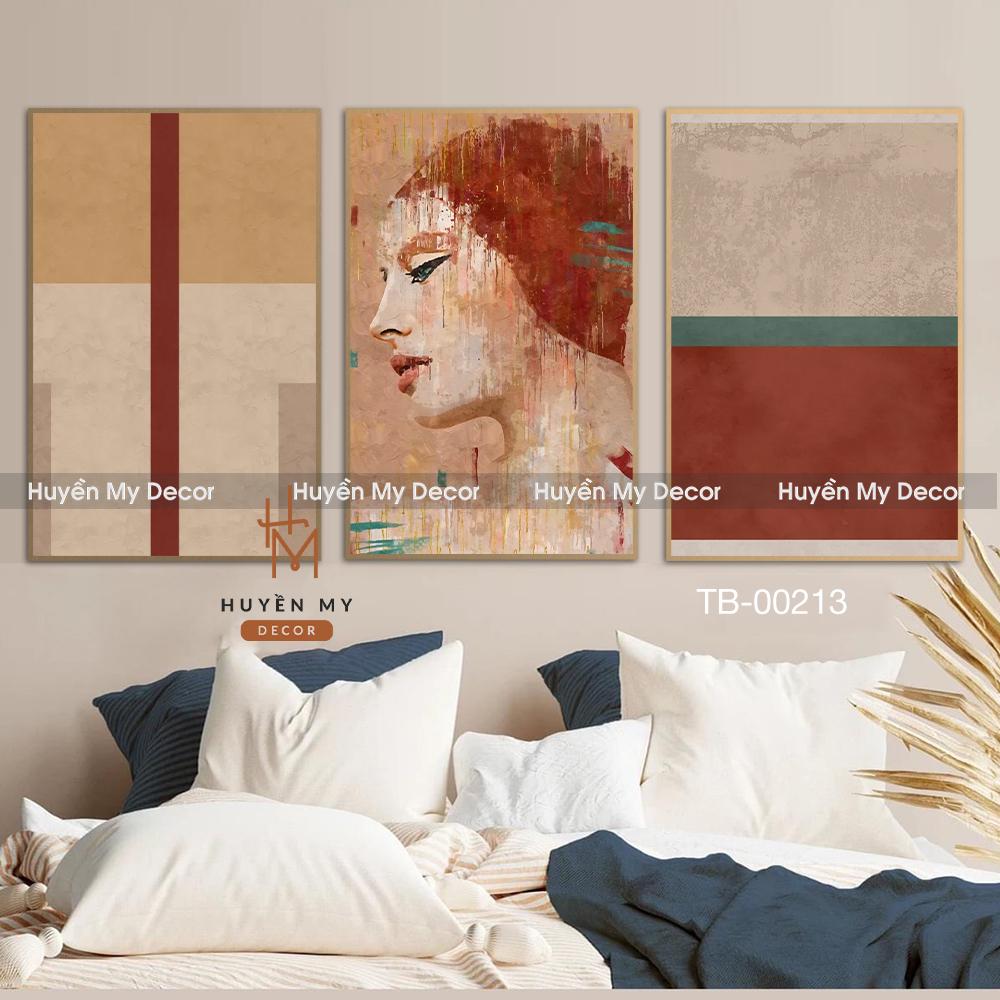 - Bộ 3 bức tranh treo tường hình Cô gái nghệ thuật mang đến sự tinh tế và trong trẻo, gọn gàng và tối giản cho không gian nội thất.