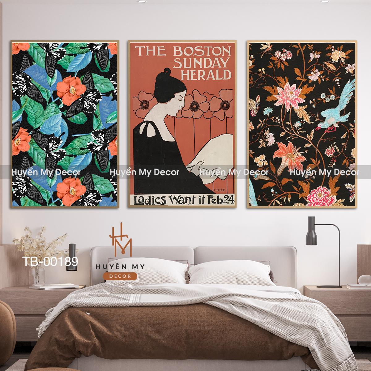 Bộ 3 Tranh Decor Hình Cô Gái Chất Liệu Canvas, Lụa Kim Sa Cao Cấp, Tranh Treo Tường Phòng Khách, Tiệm Spa - Huyền My Decor