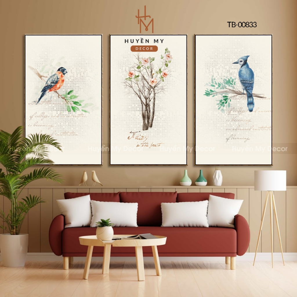 - Bộ 3 bức tranh treo tường mang đến sự tinh tế và trong trẻo, gọn gàng và tối giản cho không gian nội thất.