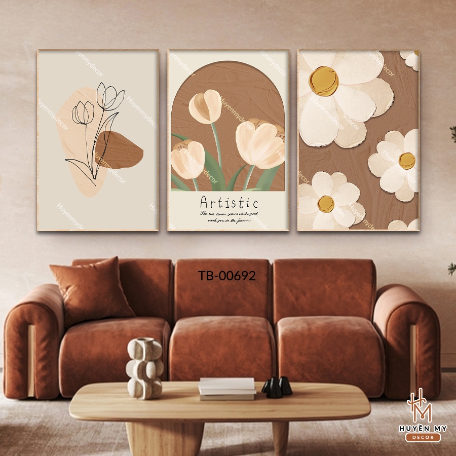 Bộ 3 Tranh Hoa Lá Nghệ Thuật Hiện Đại Chất Liệu Canvas Trang Trí Phòng Khách Phòng Ngủ, Phòng Làm Việc - Huyền My Decor