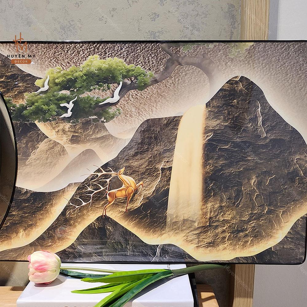 - Mặt tranh phủ tráng gương cùng với hạt pha lê tạo phản quang lung linh huyền ảo.