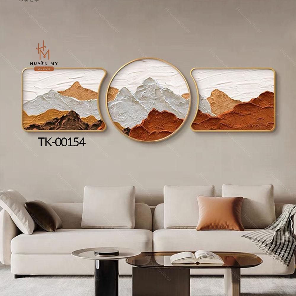 Bộ 3 Tranh Khuyết Tráng Gương Phong Thủy, Sơn Thủy Hữu Tình Hiện Đại, Trang Trí Phòng Khách, Phòng làm Việc, Huyền My Decor