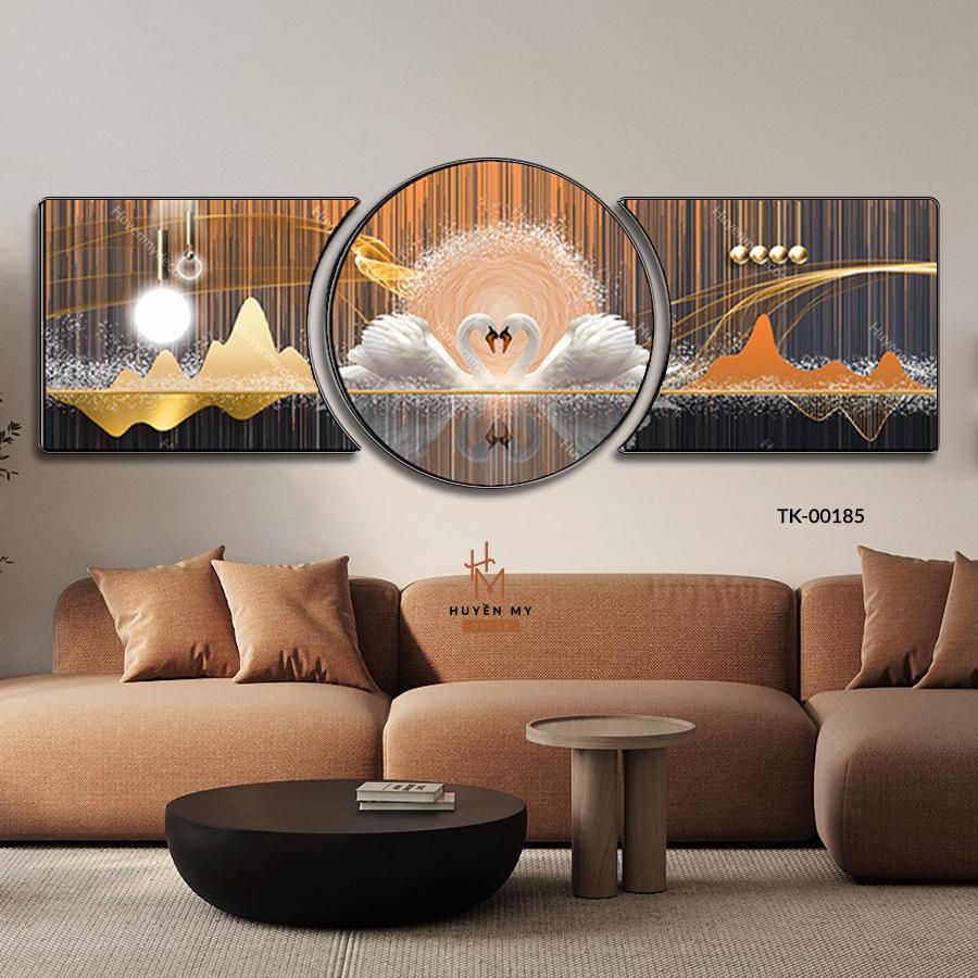 Bộ 3 Tranh Khuyết Tráng Gương Chim Công, Thiên Nga, Tranh Uyên Ương Trang Trí Phòng Khách, Phòng làm Việc , Tranh Treo Tường Huyền My Decor