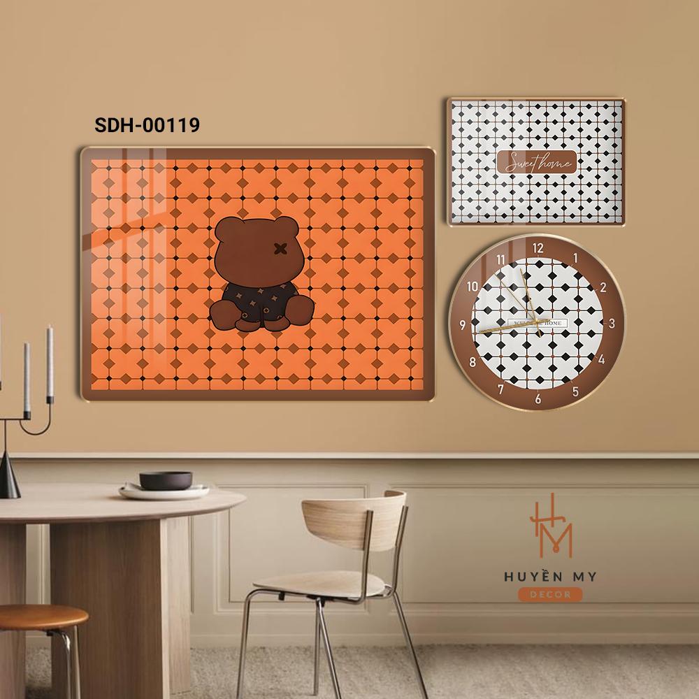 - Tên sản phẩm: Bộ 3 Tranh Đồng Hồ Tráng Gương Phù Điêu Họa Tiết Nổi