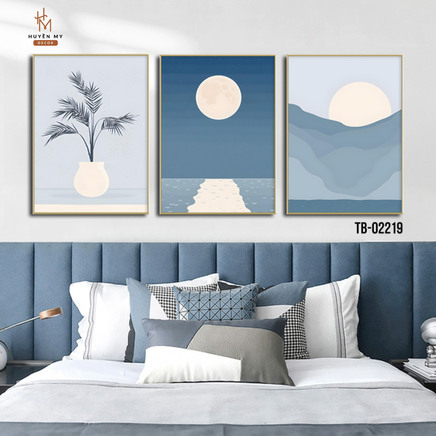 Bộ 3 bức tranh treo tường mang đến sự tinh tế và trong trẻo, gọn gàng và tối giản cho không gian nội thất.