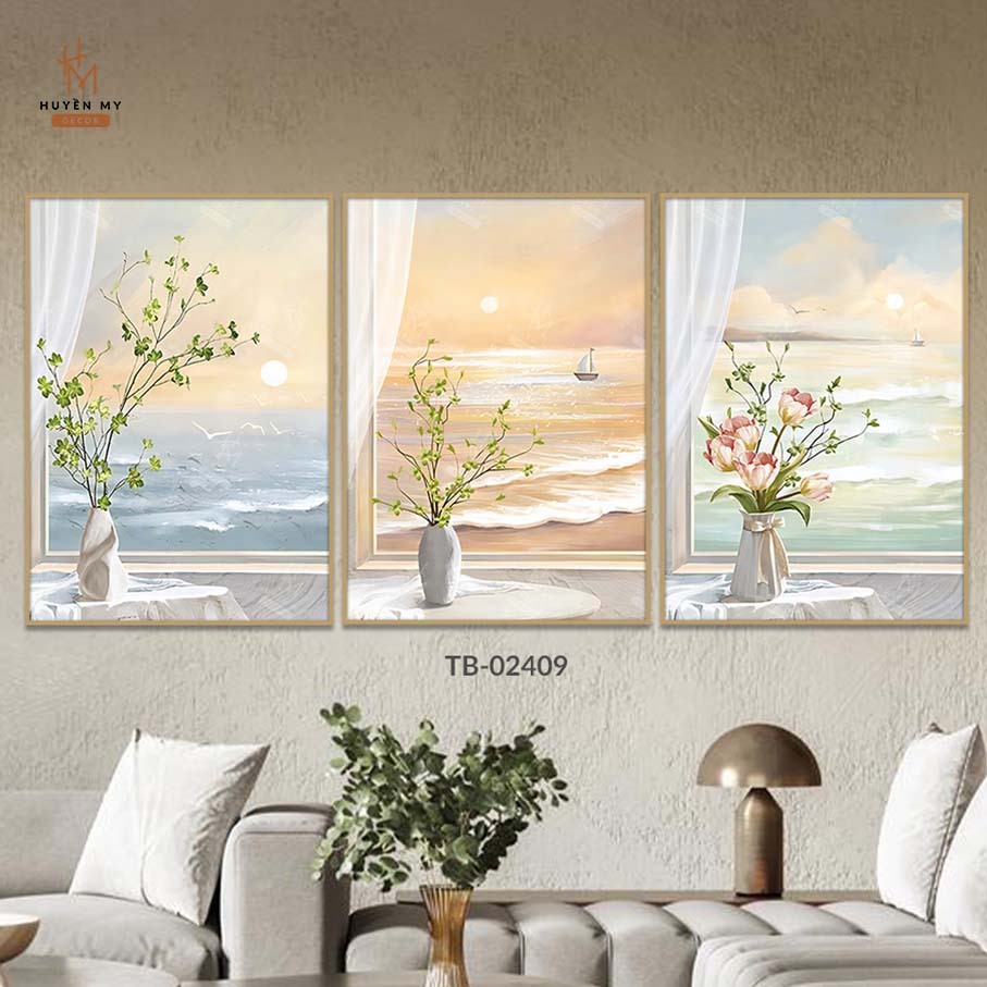 Bộ 3 Tranh Treo Tường Canvas Bình Hoa Nghệ Thuật Phong Cách - Trang Trí Phòng Khách, Phòng Ngủ Hiện Đại - Huyền My Decor