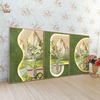 Bộ 3 Tranh Treo Tường Canvas Bình Hoa Led, Trang Trí Phòng Khách, Phòng Ngủ, Quà Tặng Tân Gia - Huyền My Decor