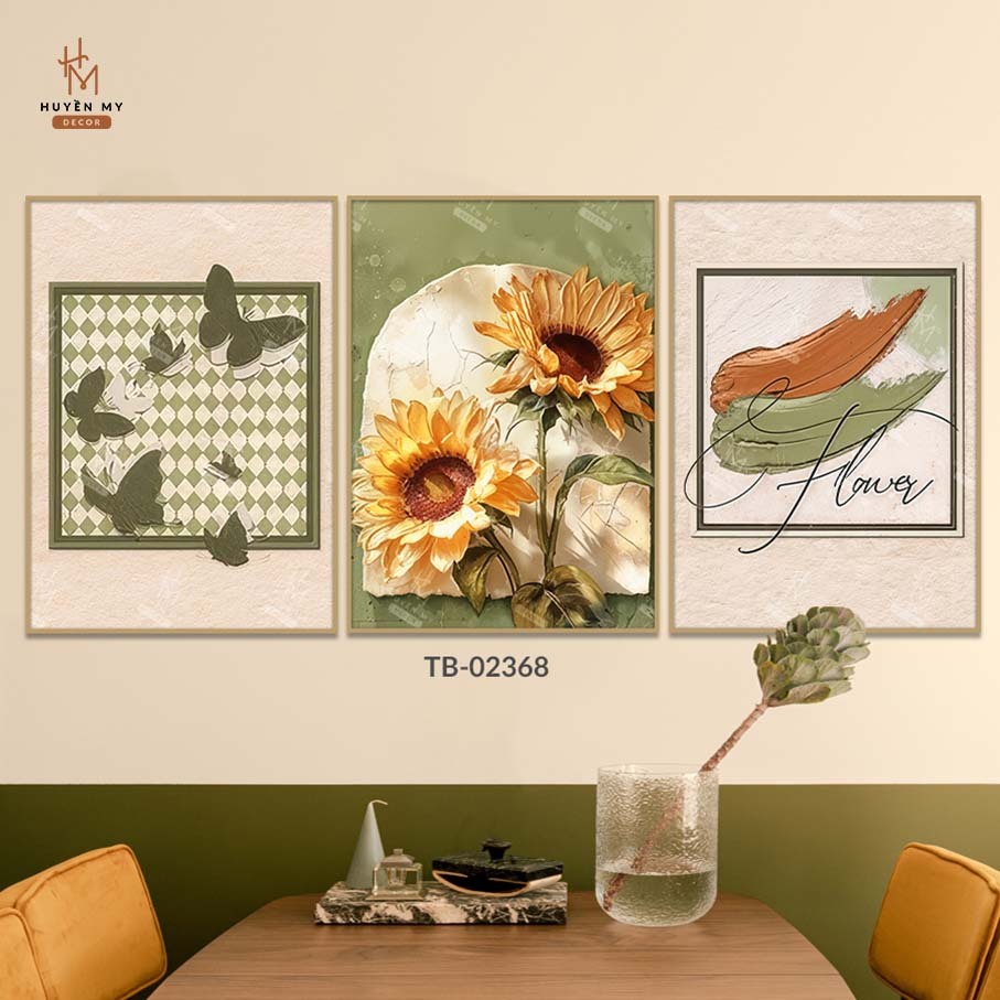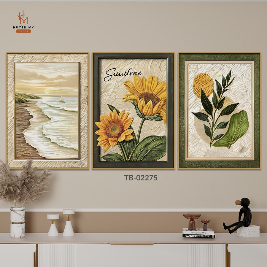 Bộ 3 Tranh Treo Tường Canvas Phong Cảnh Hoa Hướng Dương Trang Trí Phòng Khách, Phòng Ngủ, Homestay – Huyền My Decor