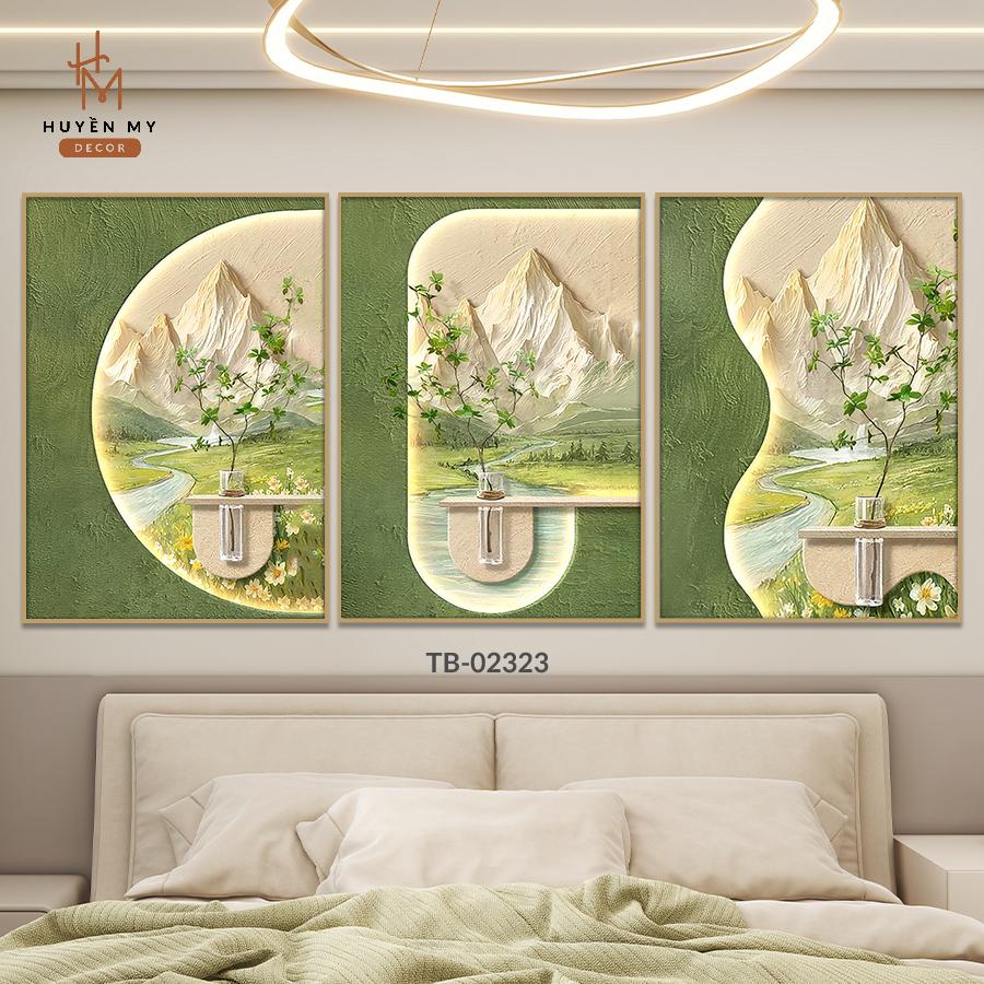 Bộ 3 Tranh Treo Tường Lụa Kim Sa Nghệ Thuật Thiên Nhiên Trang Trí Phòng Khách, Phòng Ngủ, Phòng Bếp, Spa - Huyền My Decor