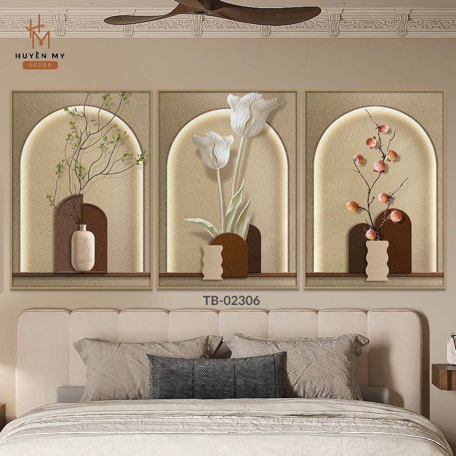 Bộ 3 Tranh Treo Tường Lụa Kim Sa Nghệ Thuật Thiên Nhiên Trang Trí Phòng Khách, Phòng Ngủ, Phòng Bếp, Spa - Huyền My Decor