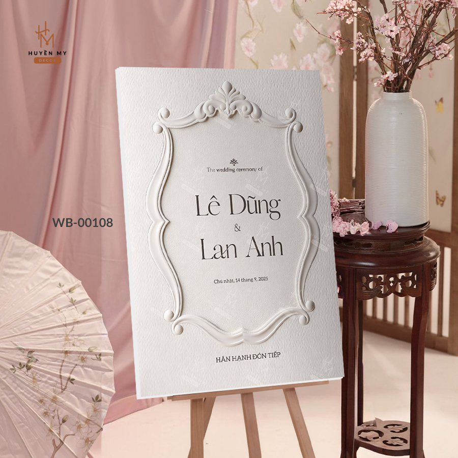 Tại Huyền My Decor, chúng mình hiểu rằng bảng chào không chỉ là vật trang trí, mà còn là lời mời gọi tinh tế, gửi gắm tình cảm của đôi lứa đến khách quý. Với bộ sưu tập Bảng Chào Tiệc Cưới Cao Cấp, ngày vui của bạn sẽ thêm phần lộng lẫy, sang trọng và tạo dấu ấn khó phai.