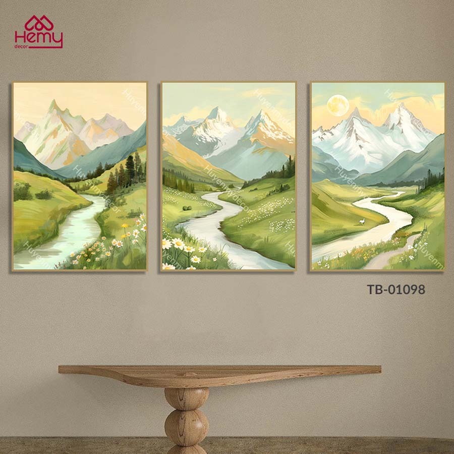 Mô tả sản phẩm Bộ 3 Tranh Canvas Thiên Nhiên Hiện Đại, Tranh Giả Led, Trang Trí Phòng Khách, Phòng Ngủ, Homestay – Hemy Decor