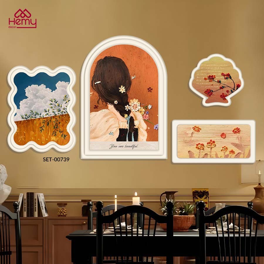 (BST Mới) Set 4 Tranh Dán Trang Trí Phòng Khách, Phòng Ngủ, Spa, Shop Thời Trang,Nhiều Mẫu Nghệ Thuật- HeMy Decor