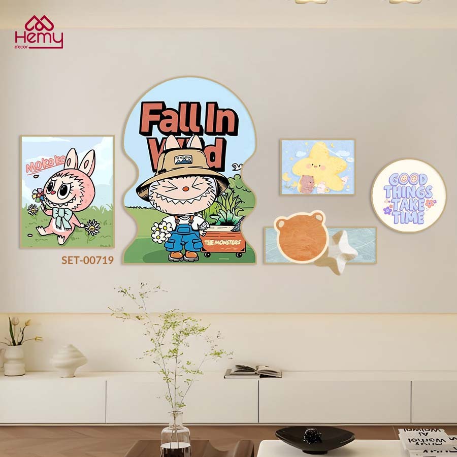 (BST MỚI) Set 5 Tranh Dán Tường Labubu, Skun Panda, Dễ Thương Trang Trí Phòng Khách, Phòng Ngủ- HeMy Decor