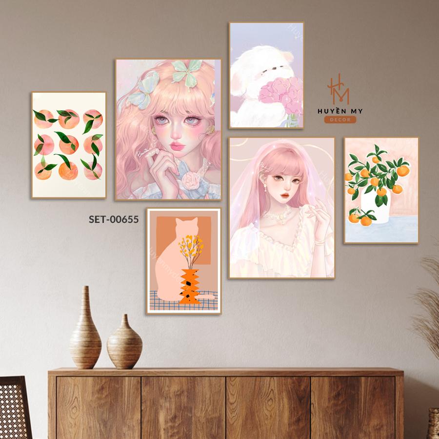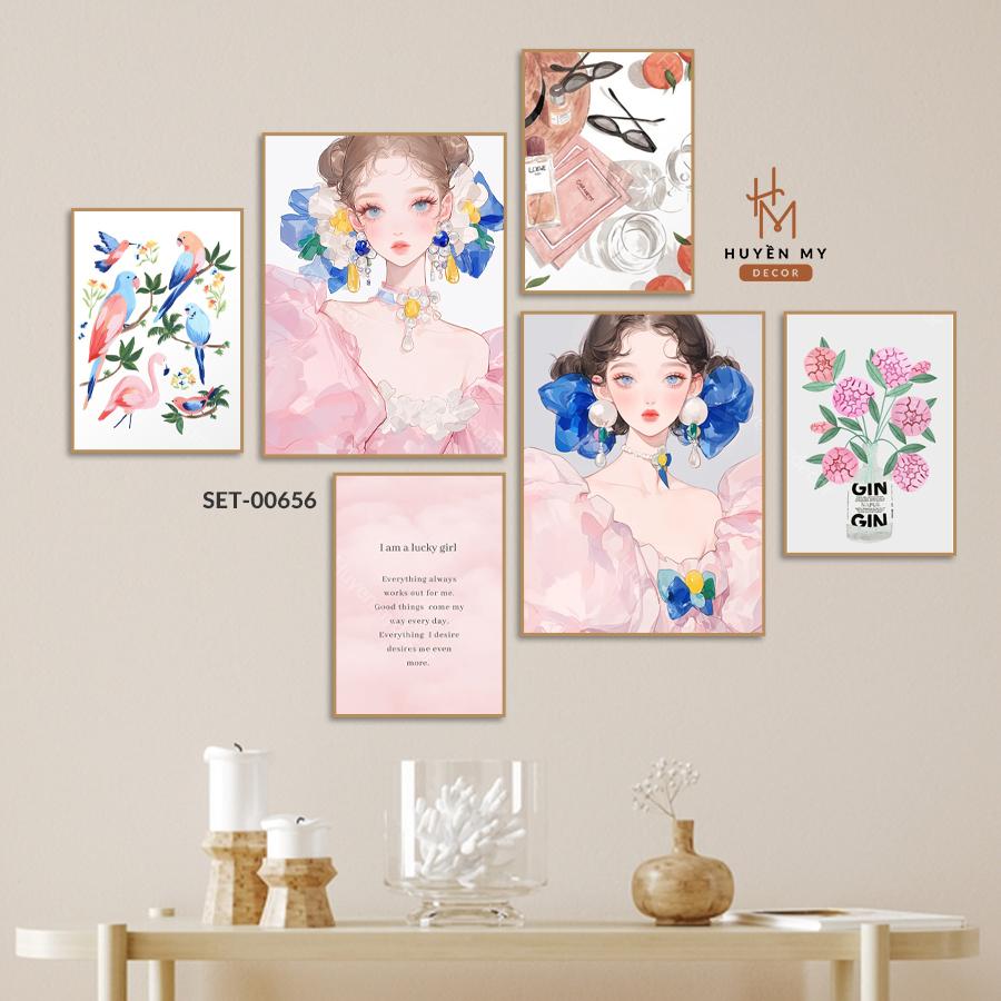 (BST mới) Set 6 Tranh Decor, Cô Gái Nghệ Thuật Trang Trí Phòng Ngủ, Spa, Tiệm Nails, Livestream, Dán Tường Có Sẵn Keo Dán