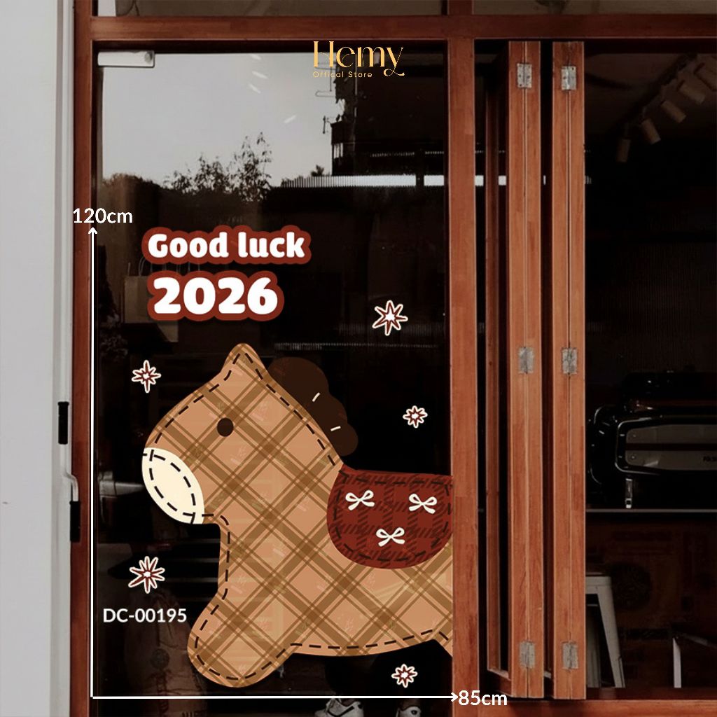 Decal Chú Ngựa Ngộ Nghĩnh Trang Trí Tết 2026, Decor Nhà Cửa, Cửa Kính, Gương, Quán Cafe - HeMy Decor