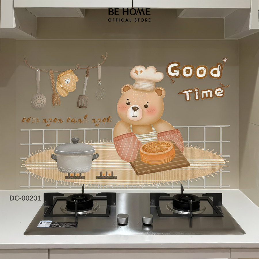 Tên sản phẩm : Decal Dán Bếp Họa Tiết Chú Hổ Nấu Ăn, Decor Không Gian Bếp, Hiện Đại, Dễ Lau Chùi, Chống Bám Bẩn - BeHome Decor