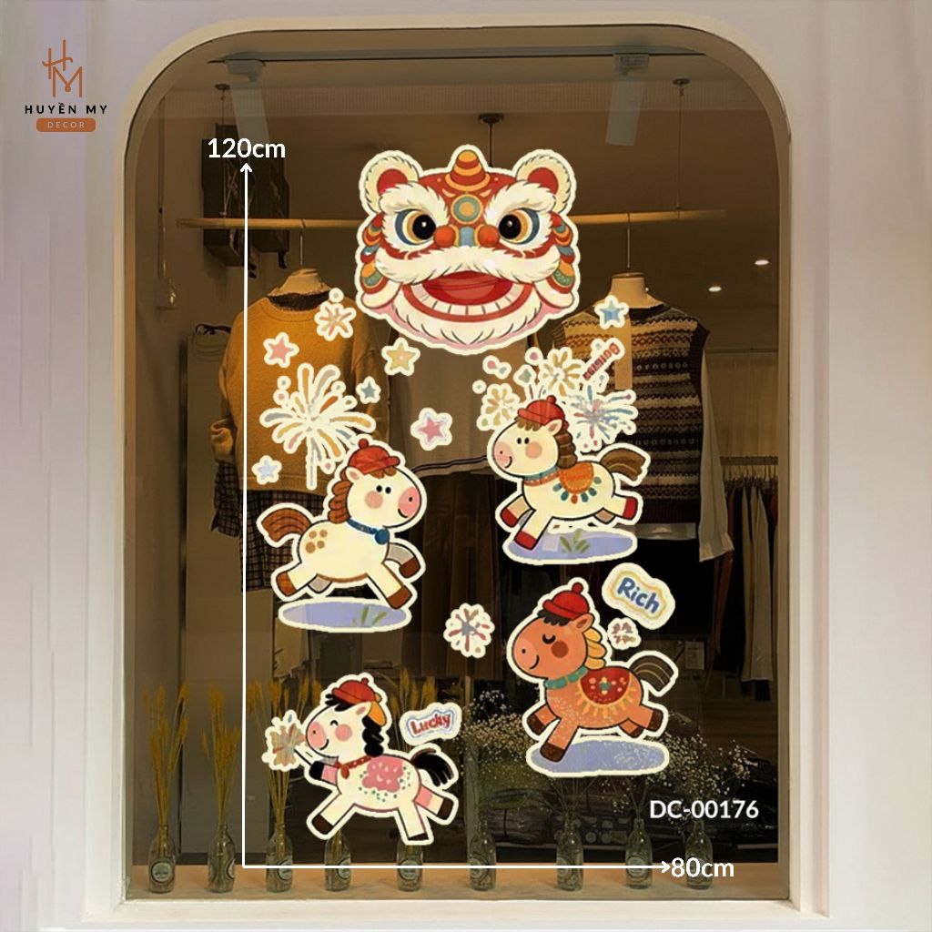 Decal Dán Con Lân Trang Trí Tết Việt 2026 Bính Ngọ Trang Trí Nhà Cửa Kín, Gương - Huyền My Decor
