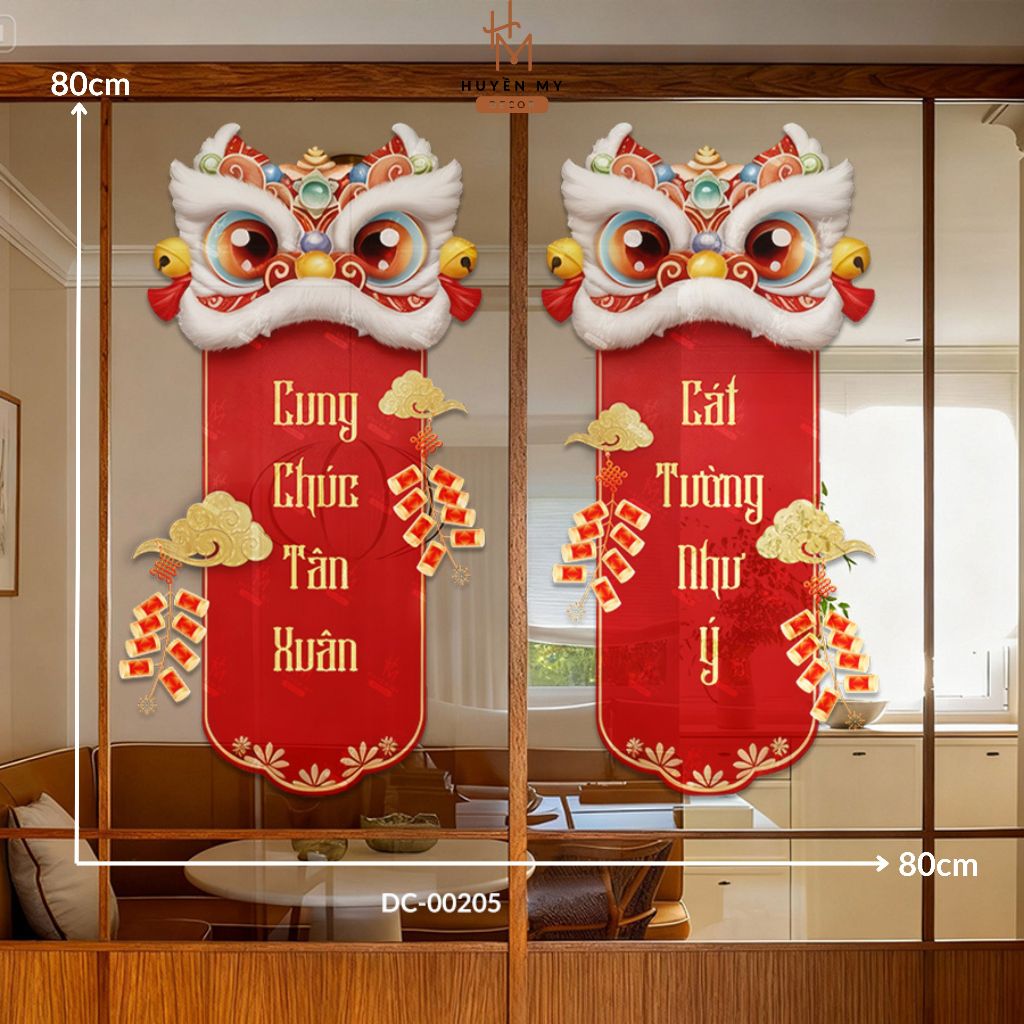 Tên sản phẩm: Decal Dán Tường Câu Đối Tết 2026 Họa Tiết Lân May Mắn, Decor Gương, Cửa Kính, Quán Cafe, PVC Chống Nước - Huyền My Decor