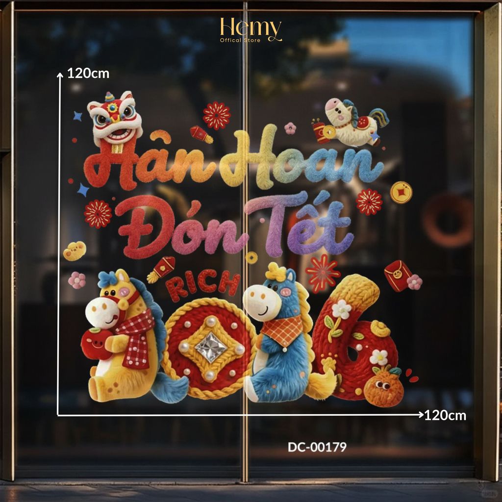 Tên sản phẩm: Decal Dán Tường Chủ Đề Tết Bính Ngọ Trang Trí Nhà Cửa, Phòng Khách, Cửa Kính, Gương, Mẫu Hiện Đại - HeMy Decor