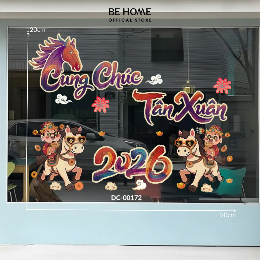 Decal Dán Tường Tết Bính Ngọ 2026 Trang Trí Phòng Khách, Decor Cửa Kính, Gương, CHất Liệu PVC Chống Nước - Behome Decor