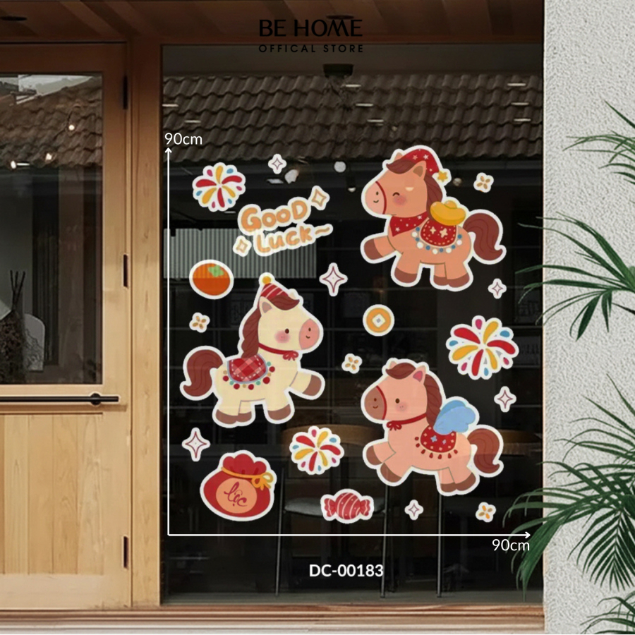 Decal Dán Tường Trang Trí Tết 2026 Decor Cửa Kính, Gương, Quán Cafe, Chống Nước, Bền Đẹp - Behome Decor