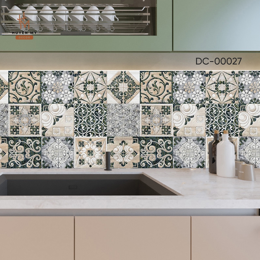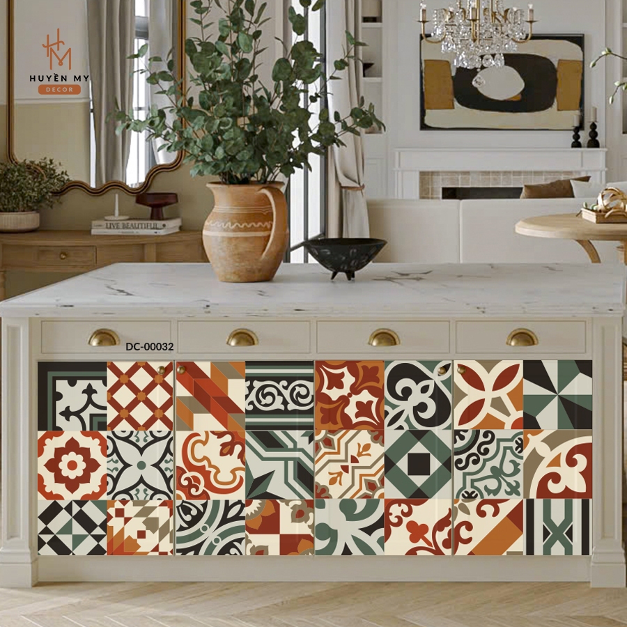 Mô tả sản phẩm Decal Dán Bếp Chống Nước Gạch Bông Cổ Điển Nhiều Mẫu Dán Tường, Dán Cửa Kính, Phòng Tắm- Huyền My Decor