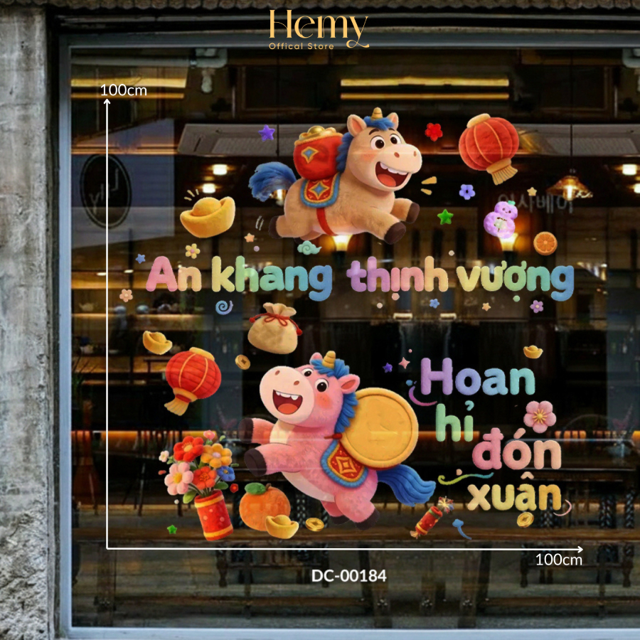 Tên sản phẩm: Decal Tết 2026 Dán Cửa Kính Trang Trí Nhà, Chống Nước, Bền Màu, Decor Gương, Cửa Kính, Quán Cafe - HeMy Decor