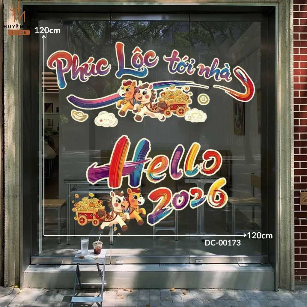Decal Tết Bính Ngọ 2026 phong cách Hiện Đại, chất liệu PVC in UV sắc nét