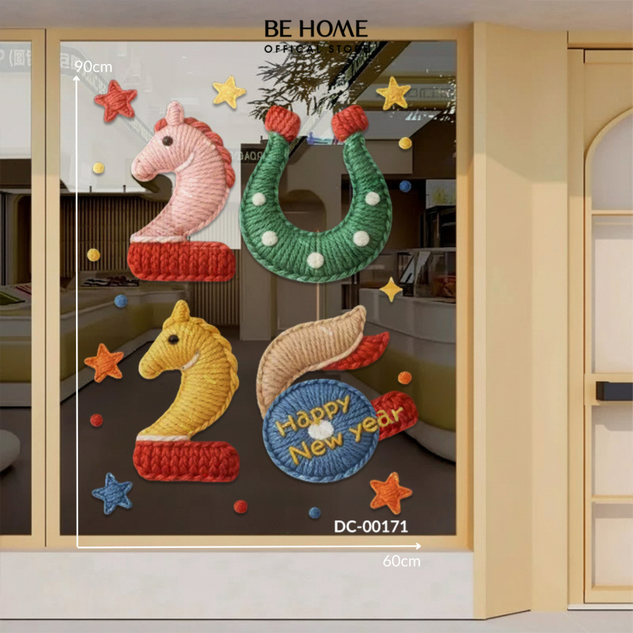 Tên sản phẩm: Decal Tết Bính Ngọ 2026 Dán Tường, Dán Cửa Kính, Gương, Quán Cafe, Studio, Chống Nước PVC – Huyền My Decor