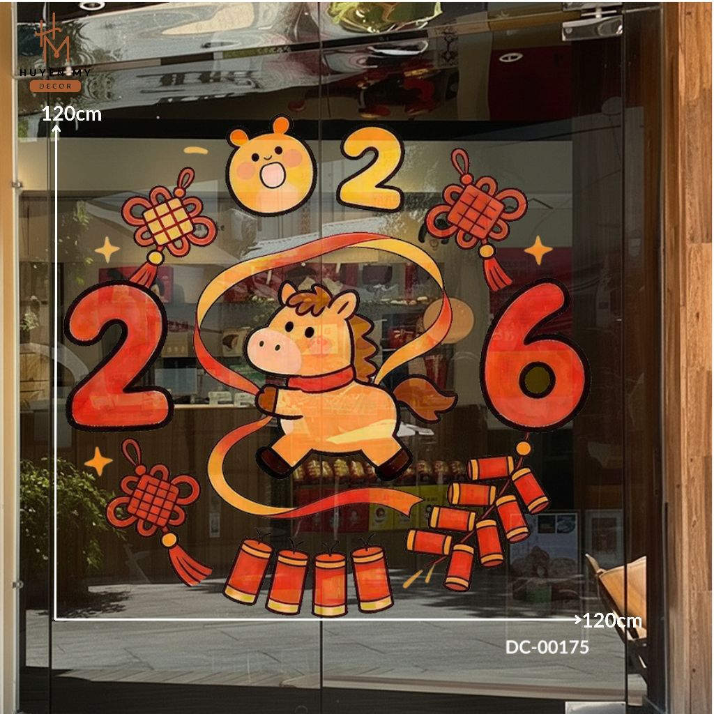 Decal Trang Trí Nhà Ngày Tết 2026 Bính Ngọ, Dán Cửa Kính, Gương PVC Cao Cấp - Huyền My Decor