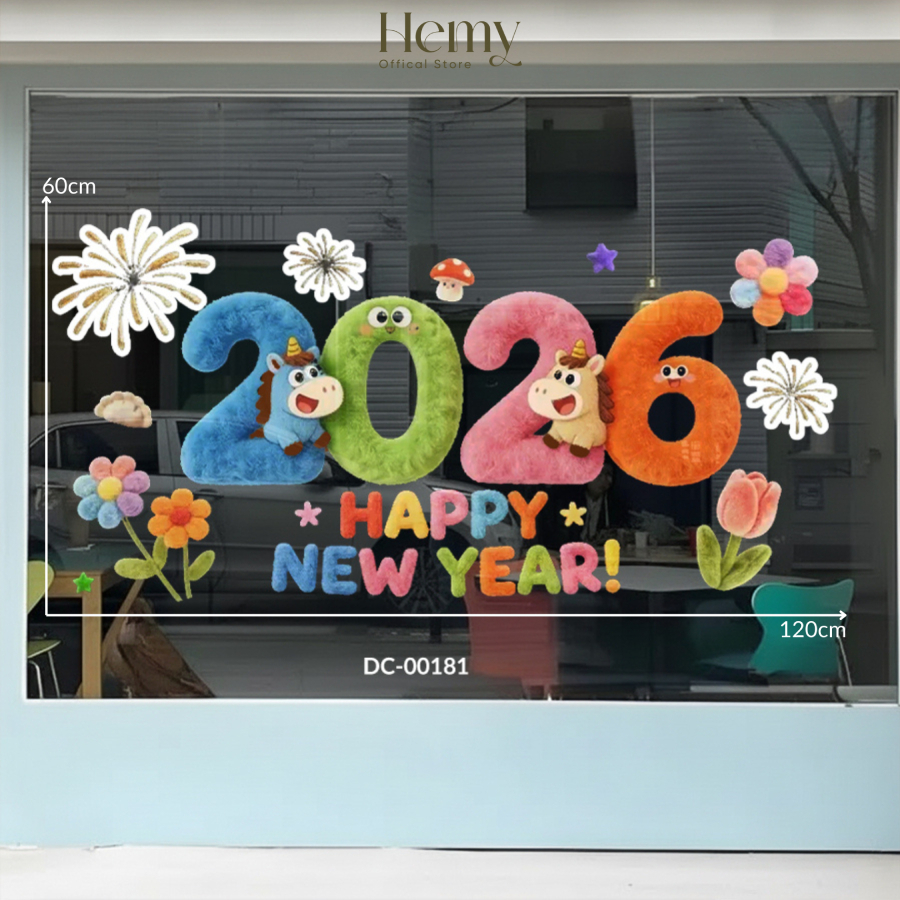 Decal Trang Trí Tết 2026 Bính Ngọ, Dán Tường Nhà, Cửa Kính, Gương, Chống Nước - HeMy Decor