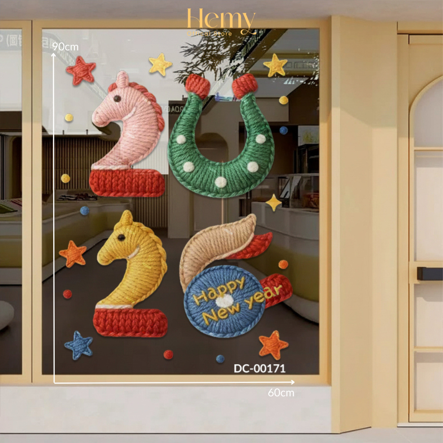Decal Trang Trí Tết 2026 Bính Ngọ, Phong Cách Tết Việt Dán Kính, Dán Tường, Quán Cafe, PVC Chống Nước - HeMy Decor