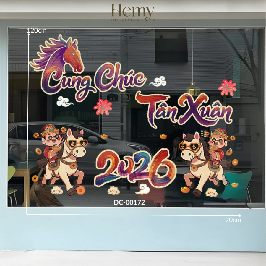 Decal Trang Trí Tết 2026 Bính Ngọ Dán Tường, Gương Cửa Kính, Quán Cafe Chống Nước PVC - HeMy Decor