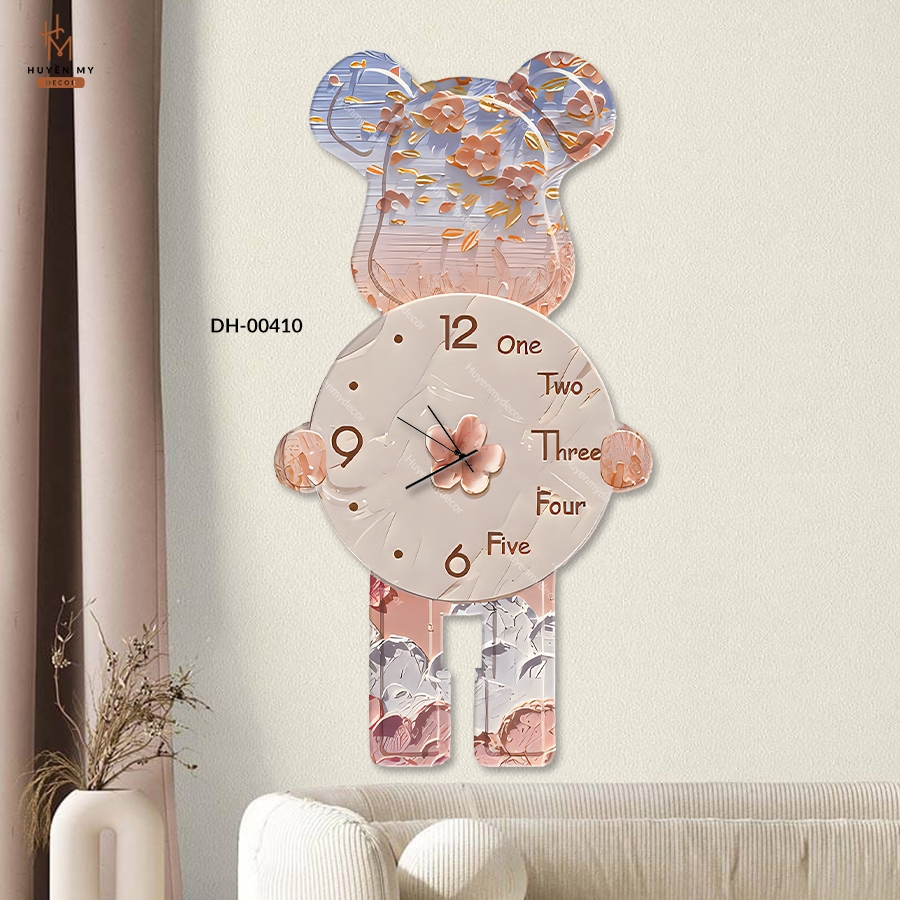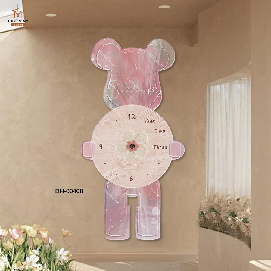 Đồng Hồ Gấu Bearbrick Tráng Gương Treo Tường, Phong Cách 3D Hiện Đại, Decor Phòng Khách, Phòng Ngủ, Shop Quần Áo, Live