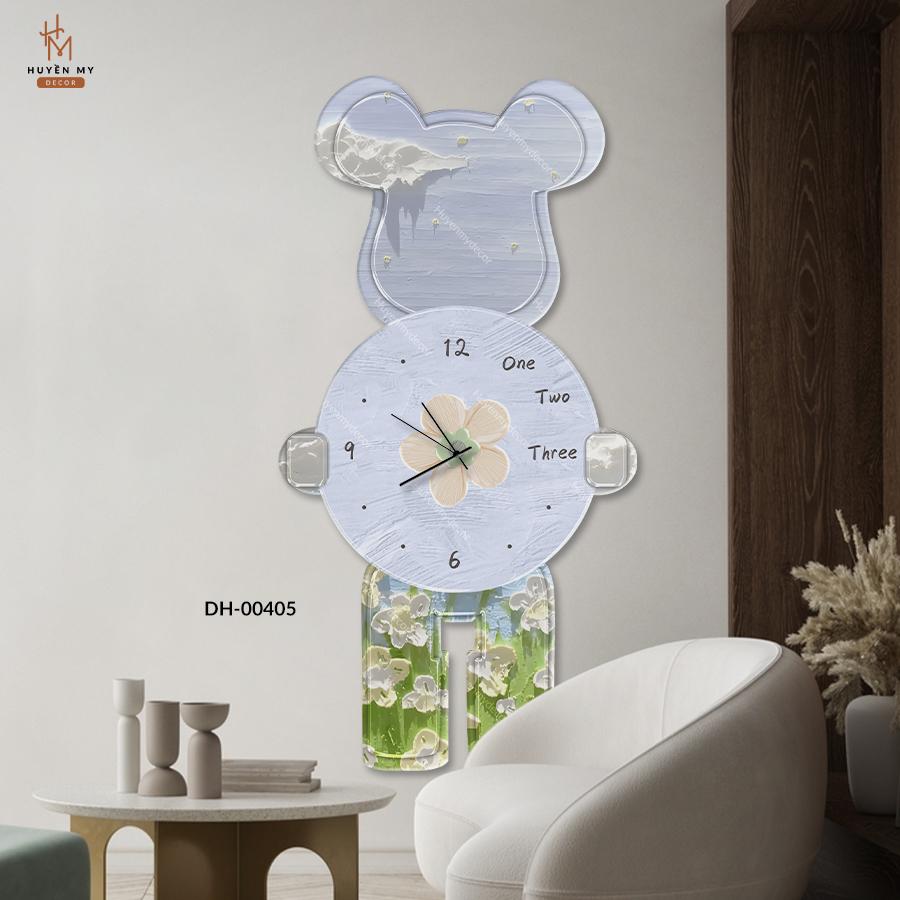 Tranh Đồng Hồ Tráng Gương Bearbrick 3D, Treo Tường Phòng Khách, Phòng Ngủ