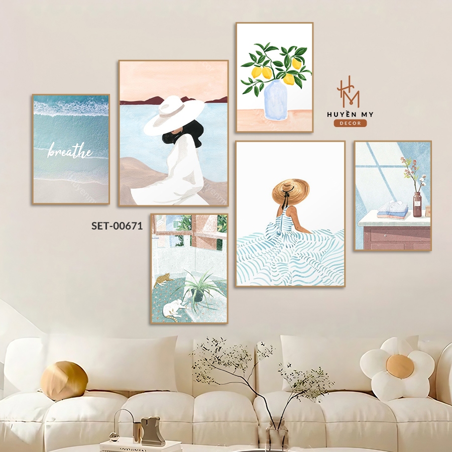 ( Nhiều mẫu) Set Combo 6 Tranh Dán Tường Trang Trí Phòng Khách, Phòng Ngủ, Spa, Tiệm Nails, Livestream,Shop Thời Trang