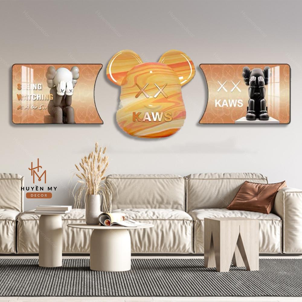 ( Nhiều mẫu ) Set Tranh Gấu Kaws, Bearbrick Tráng Gương Decor Phòng Khách, Phòng Ngủ, Salon Decor Tường Treo Tường