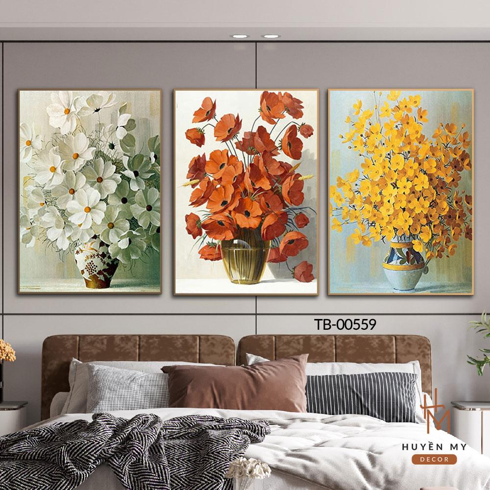 Set 3 Tranh Canvas, Lụa Kim Sa Treo Tường Họa Tiết Hoa Lá, Trang Trí Phòng Khách, Phòng Ngủ - Huyền My Decor Decor Tường
